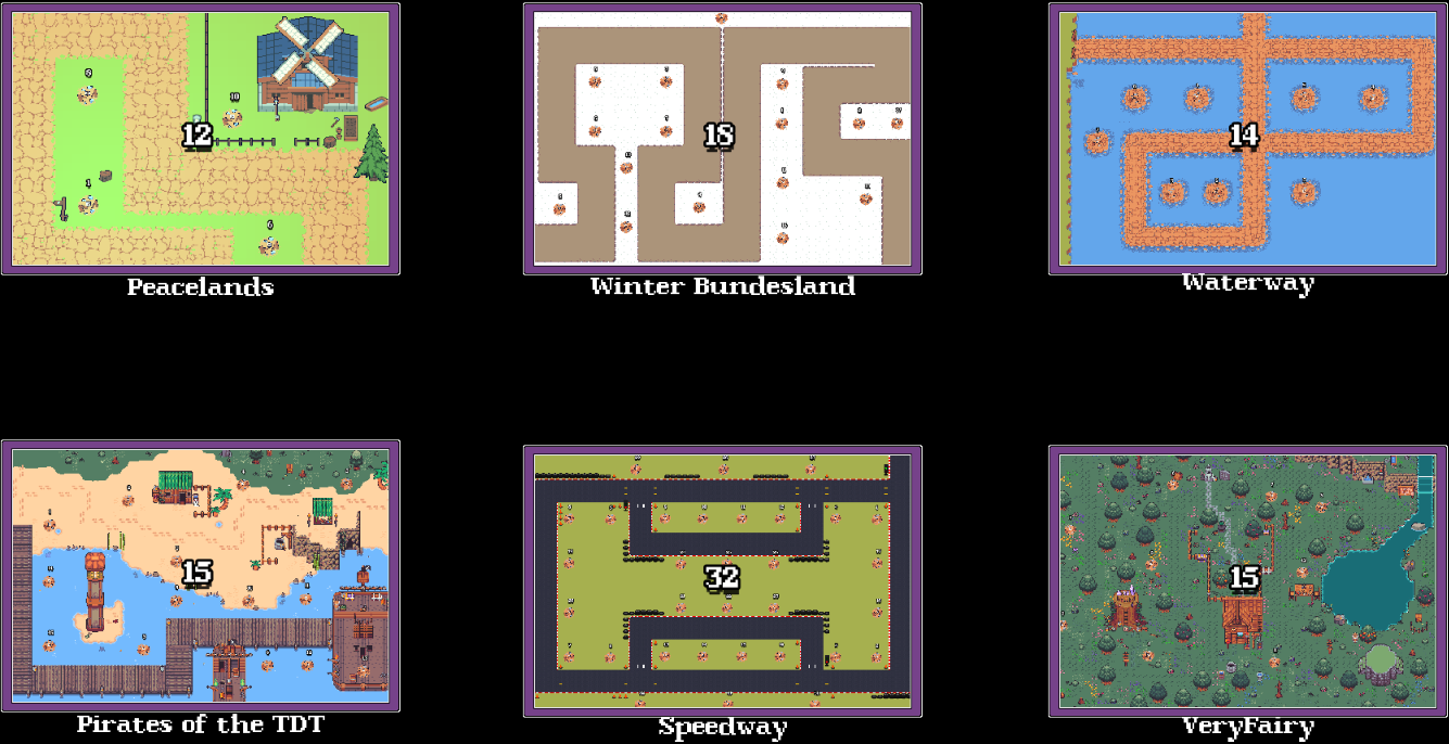 The mobs on VeryFairy will spawn on the top left following the stone path. Once the mobs reach slot 8 they will circle around the pond which slot 15 and 13 are located. After wave 10, mobs will start to avoid circling the pond and go straight for the escape.